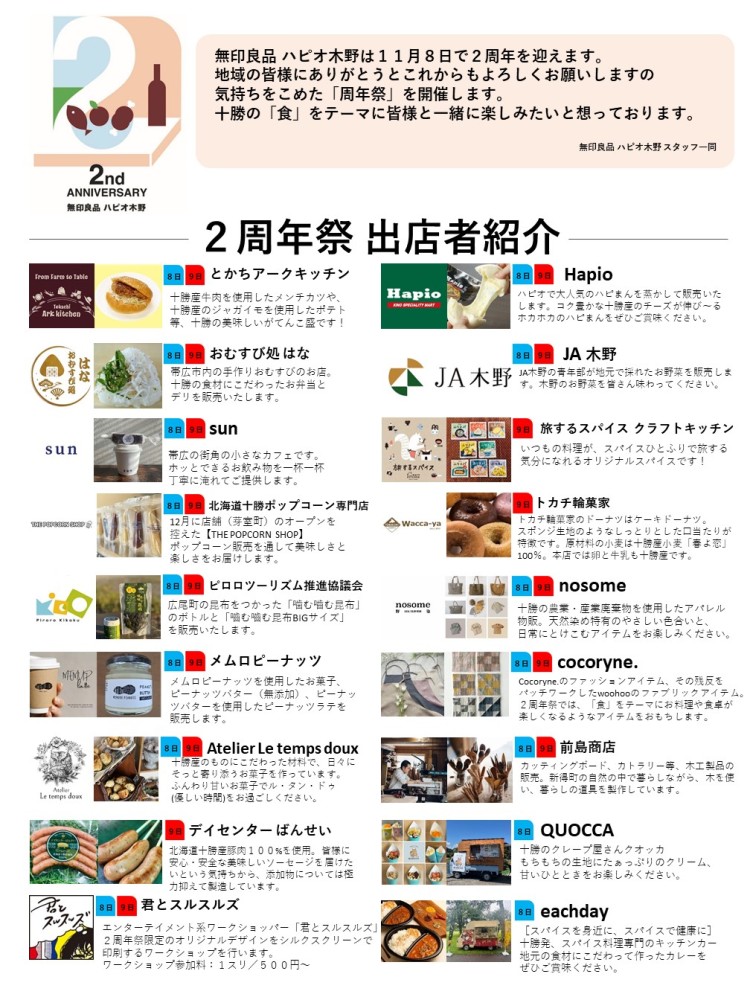 11月8日(土)・9日(日)の2日間、『無印良品 ハピオ木野様』で開催される 2周年イベント に出店いたします!